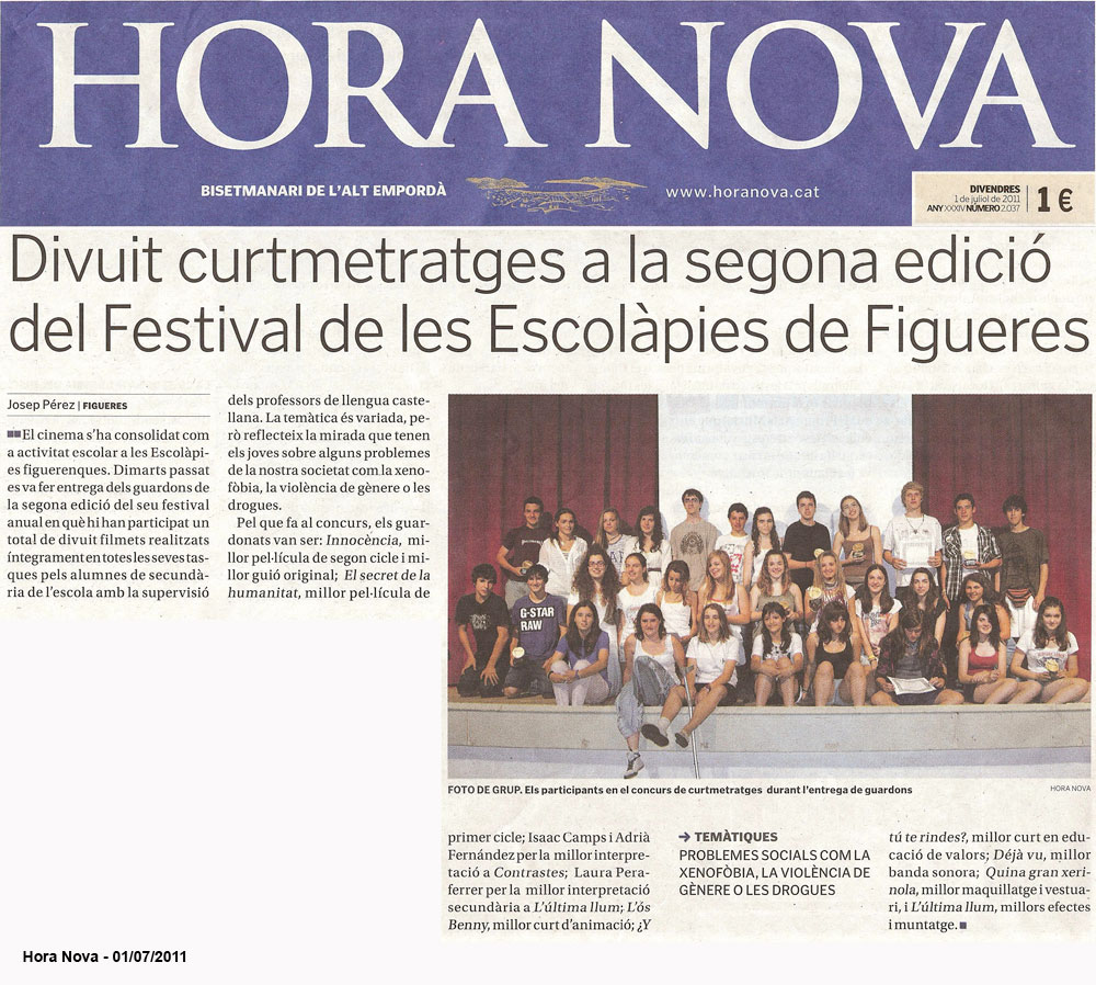 Helena Junyer, Mariona Junyer, Clara Lluansí, Georgina Pou, Laia Tremoleda, Marta Rodeja, Marc Rodeja, Eduard Rodeja, Ariadna Riu i Anna Subirós, amb la col·laboració de Jaume Pujadas en la veu en off, són els guanyadors d’aquests dos premis obtinguts amb el curtmetratge anomenat “El secret de la humanitat” que tracta l’origen dels problemes de l’ésser humà.