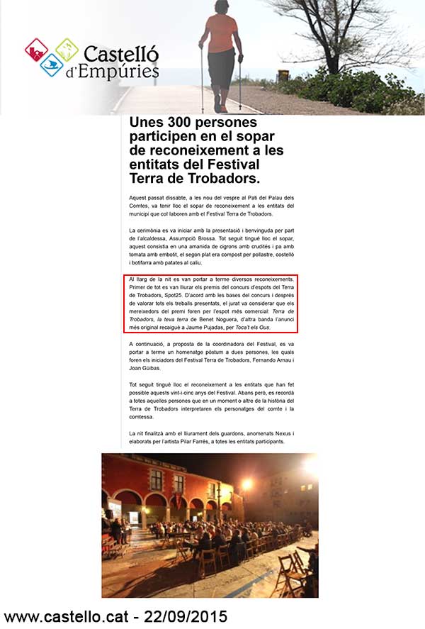 15-09-22 www.castello.cat – JP – Spot25 – Castello Empuries – F Publicat el 29/09/2015 amb 600 × 887 a SPOT25 SPOT25 – Guanyadors 2015